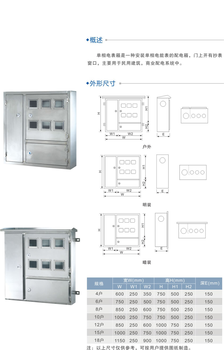 不銹鋼雙門室外電表箱