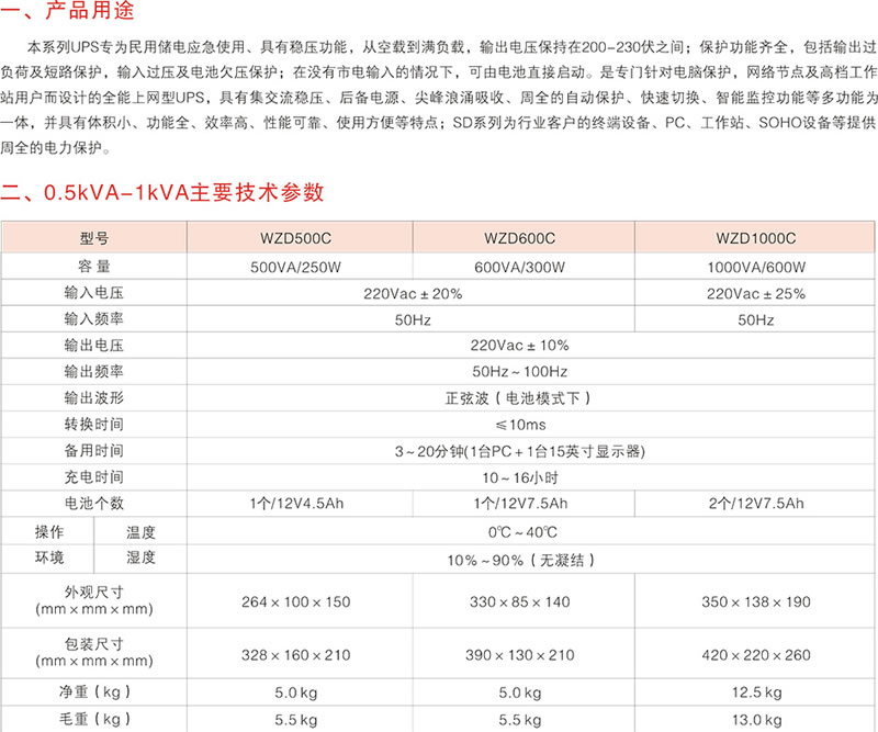 WZD-UPS高頻在線式0.5kVA-3kVA